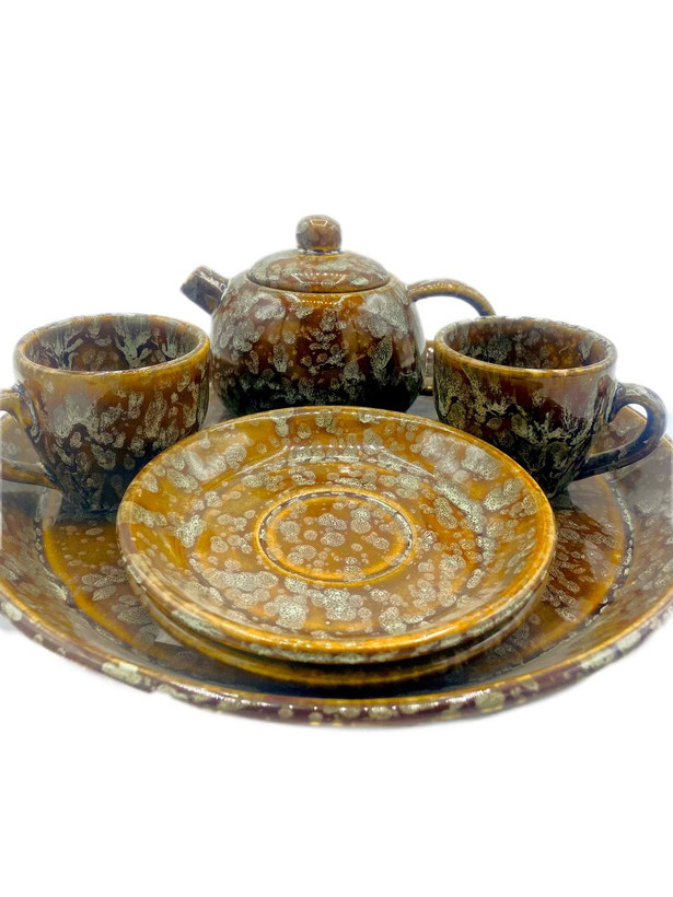سرویس چایخوری سفالی با روکش لعاب شرهای