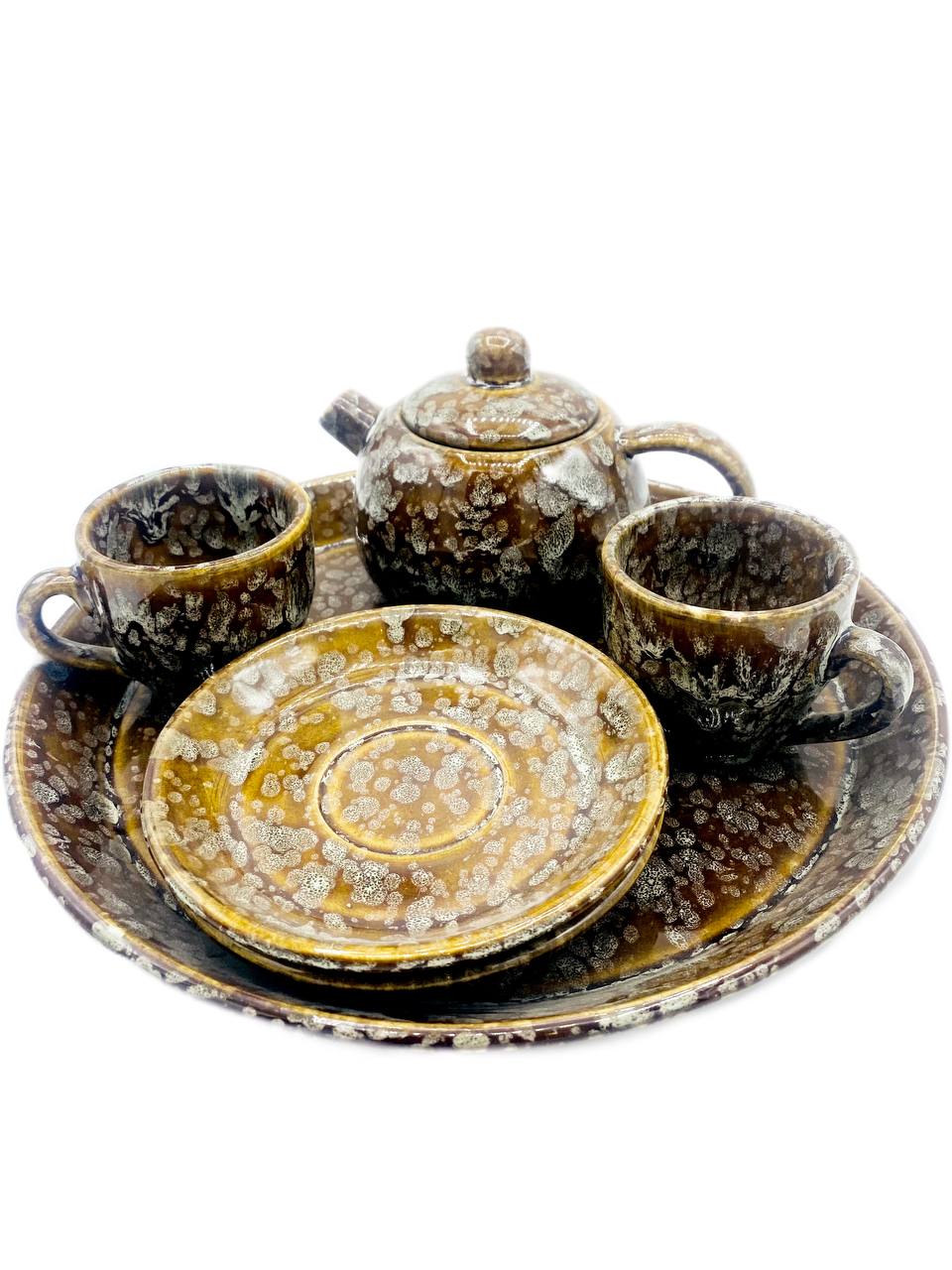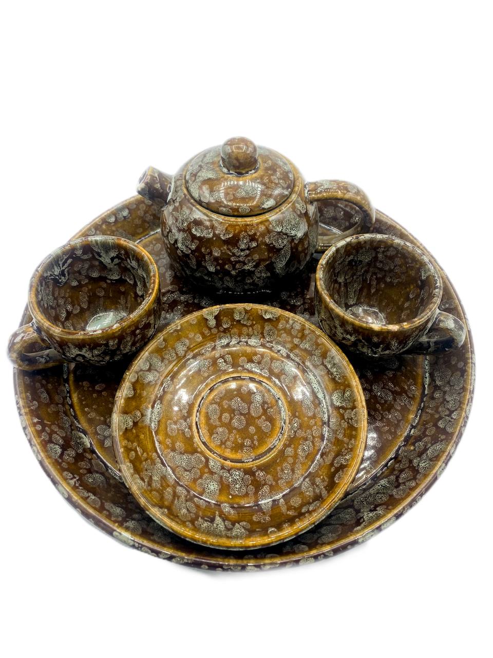 سرویس چایخوری سفالی با روکش لعاب شرهای